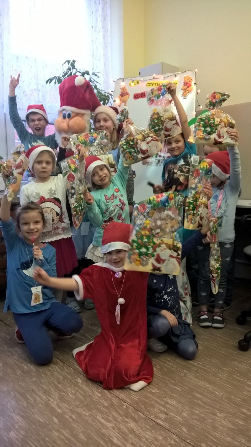 We wtorek 6 grudnia 2016 roku na zajęciach Klubu Czytelników Kubusia Puchatka odbyło się spotkanie mikołajkowe. Wszyscy byli bardzo szczęśliwi jak okazało się, że pod naszą nieobecność odwiedził nas Mikołaj i zostawił worek pełen prezentów. Nie zabrakło spacjalnych piosenek zaśpiewanych dla Mikołała oraz tradycyjnej "iskierki" kończącej nasze zajęcia. W worku po prezentach zostawiliśmy laurki stworzone specjalnie dla Mikołaja. Wszyscy wspaniale się bawiliśm. Dziękujemy Mikołaju :)