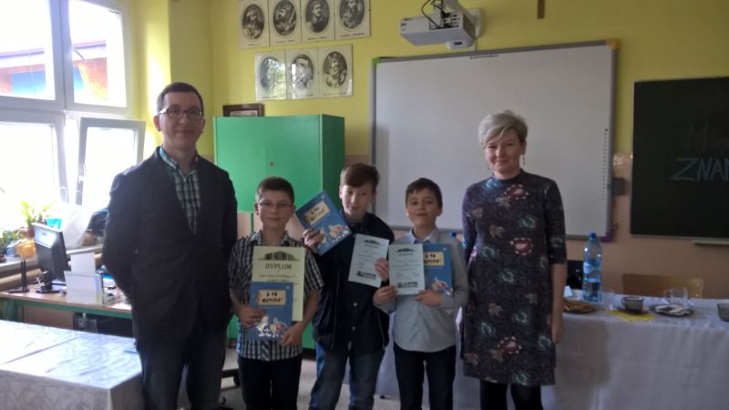17 maja 2017 roku troje uczniów z naszej szkoły: Maksymilian Delawski, Błażej Tomecki i Krzysztof Kahlert z klasy IV c, uczestniczyło w VII Międzyszkolnym Konkursie czytelniczym pt "Znam moje lektury". Konkurs przebiegał w oparciu o znajomość treści książki pt. Baśniobor cz III, oraz "Lessie, wróć!". Nasza drużyna zaprezentowała się bardzo szeroką wiedzą oraz wielką pomysłowością. Uczniowie wywalczyli II miejsce w konkursie. Gratulujemy wiedzy oraz życzymy dalszego zapału do czytania. Na podsumowaniu takiego osiągnięcia nie mogło zabraknąć kawałka pizzy i pysznych lodów.