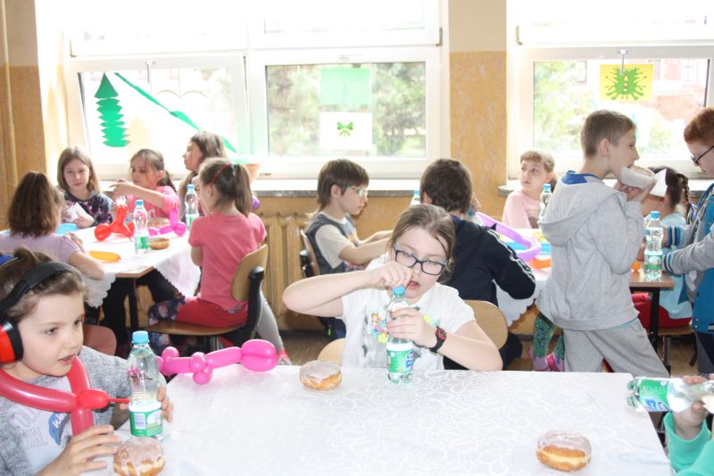 10 maja 2017 roku po raz XVII w naszej szkole odbył się Międzyszkolny Festyn Integracyjny. W tym roku motywem przewodnim wspólnej zabawy był świat cyrku. W festynie uczestniczyły klasy integracyjne, zaproszona grupa przedszkolna „Jeżyki” oraz goście ze szkoły nr 11 z Będzina, nr 3 z Czeladzi i nr 11 z Katowic. W ponaddwugodzinnej imprezie, mieliśmy możliwość spróbowania żonglerki i woltyżerki, przebrać się w cyrkowej garderobie, wykonać figle na twarzy i doświadczyć wielu innych atrakcji, a w międzyczasie posilić się słodkim poczęstunkiem.  Wspólnie wykonaliśmy cyrkowy kapelusz, który ozdobiony imiennymi emblematami uczestników, stał się symbolem integracji. Festyn uświetniła obecność wolontariuszy Fundacji Dr Clown, a także niezapomniany występ iluzjonisty pana Tomasza Kabisa. Z wypiekami na twarzy i czerwonymi nosami klaunów, pożegnaliśmy się do następnego festynu. A to przecież już za rok!