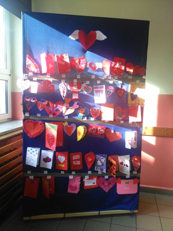 Na korytarzu przy dużej sali gimnastycznej zaprezentowana została wystawka prac z odbytego konkursu plastyczno – technicznego, pt. „Torowisko to nie boisko”.