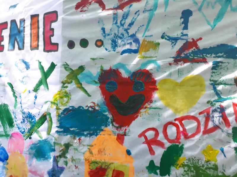 Odrysowujemy dłonie, wycinamy i kleimy, zgodnie z własną indywidualną wizją tworzymy wspólne dzieło. Efekt będzie widoczny na samym końcu.