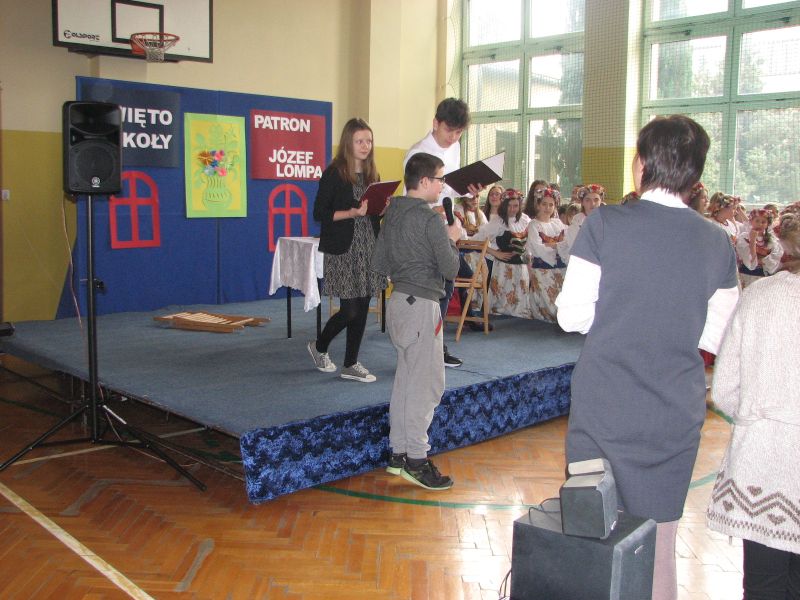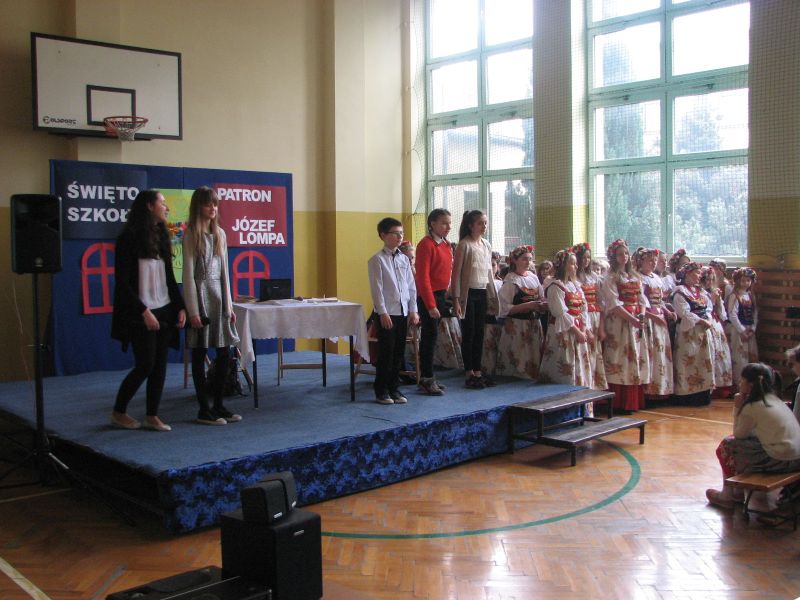 Akademię, z udziałem Dyrekcji i przedstawicieli Rady Rodziców, rozpoczęło odśpiewanie hymnów: państowego i szkolnego, a następnie Pani Dyrektor Małgorzata Papierniak wprowadziła nas w ten uroczysty dzień. Kolejna część miała charakter artystyczny. Zaśpiewał dla nas zespół kółka regionalnego, młodzi aktorzy w krótkim przedstawieniu opowiedzieli o życiu i twórczości naszego patrona wzbogacając swój występ prezentacją multimedialną. Punktem kulminacyjnym była sonda połączona z późniejszym quizem o Lompie.