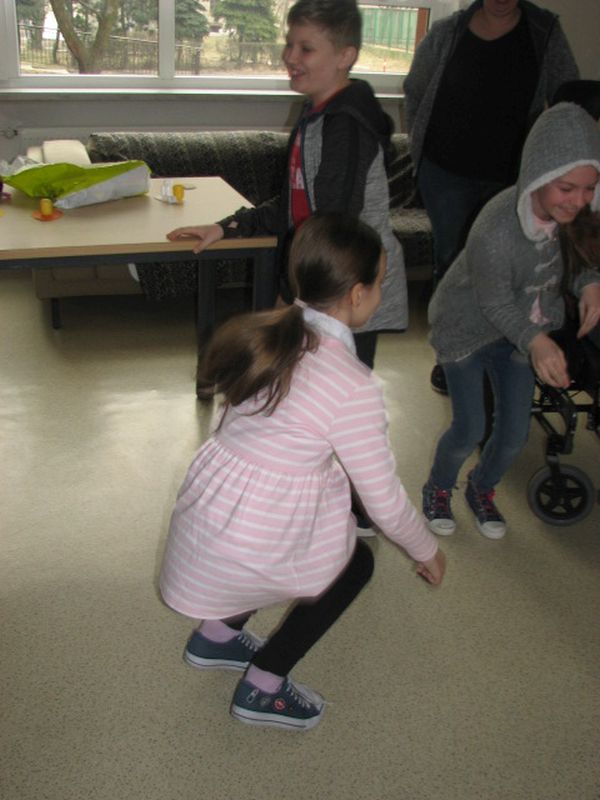 23.03.2018r. uczniowie klasy IV b  odwiedzili podopiecznych Placówki 25+. Wizyta miała charakter wiosenno-świąteczny, a motywem przewodnim było świąteczne jajeczko. Wspólnie szukaliśmy pisanek, których znalezienie związane było z wykonaniem zadania np. zaprezentowanie siebie jako świątecznego zajączka. Zatańczyliśmy w kole, zaśpiewaliśmy piosenki, wysłuchaliśmy recytacji wierszy w wykonaniu Julii, Darii, Olgi, Magdy i Olafa. Wykonaliśmy również wspólną pracę  plastyczną o tematyce wiosenno-świątecznej. Nie zabrakło także słodkiego jajeczka.