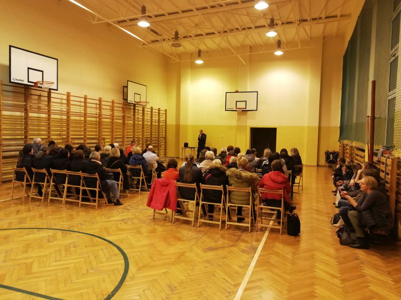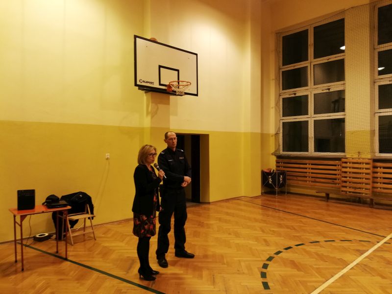 W ramach działań profilaktycznych związanych z bezpieczeństwem dzieci 20 listopada br. 0koło  70 rodziców  uczestniczyło w spotkaniu z funkcjonariuszem policji, pracującym na co dzień w Komisariacie Policji w Katowicach, panem sierż. Patrykiem Surmaczem.