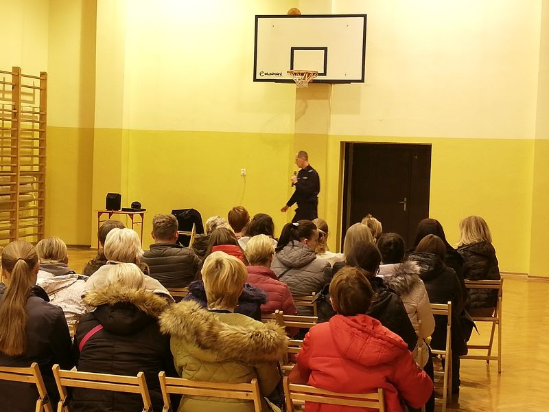 Oczywiście nie obyło się bez pytań ze strony rodziców, które dotyczyły przekazywanych informacji, jak również innych aspektów pracy policjanta. Spotkanie było interesujące i pouczające. Rodzice podziękowali prowadzącemu za wartościową i interesującą prelekcję, zapewniając, że wynieśli z niej wiele cennych informacji.