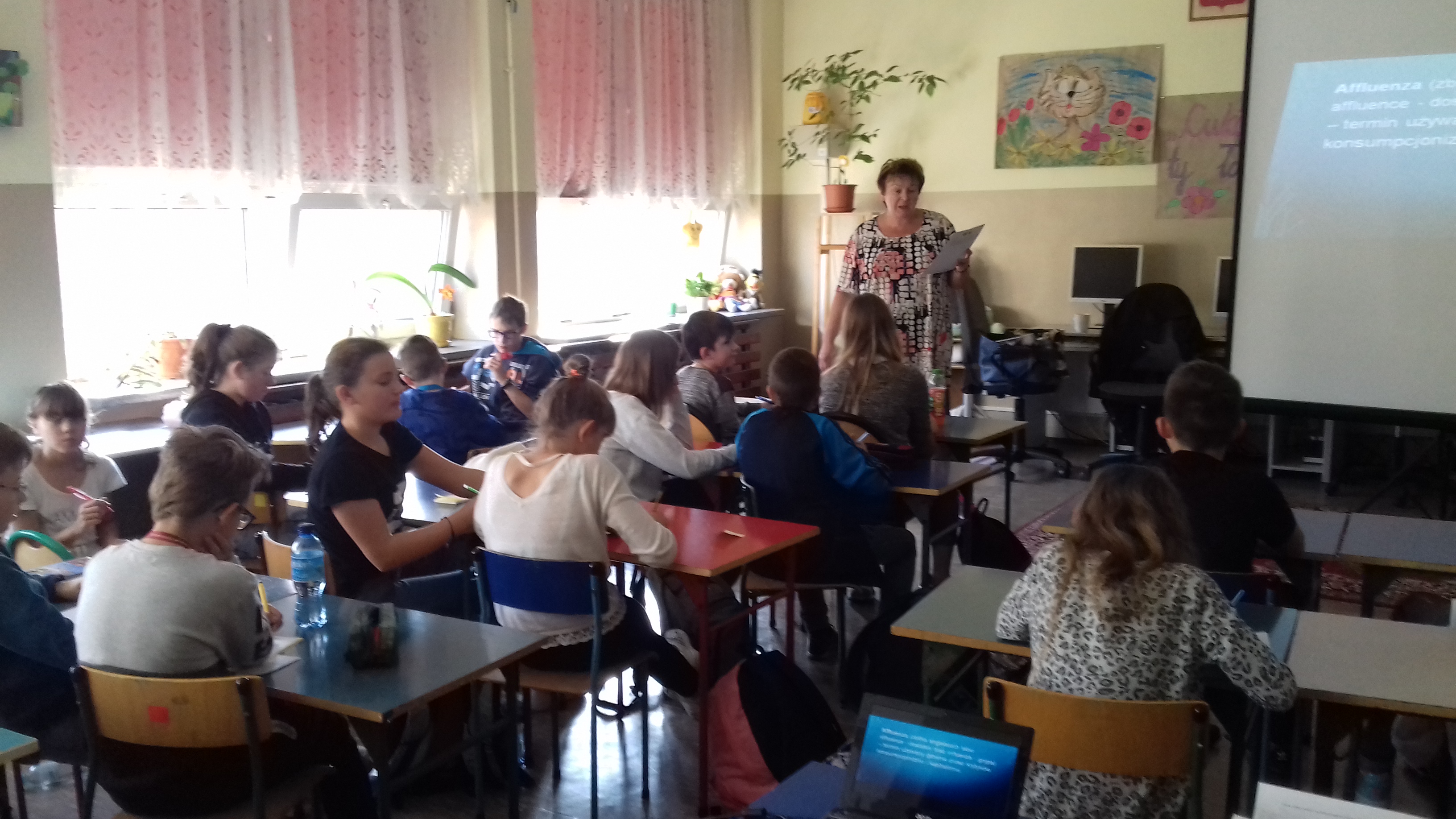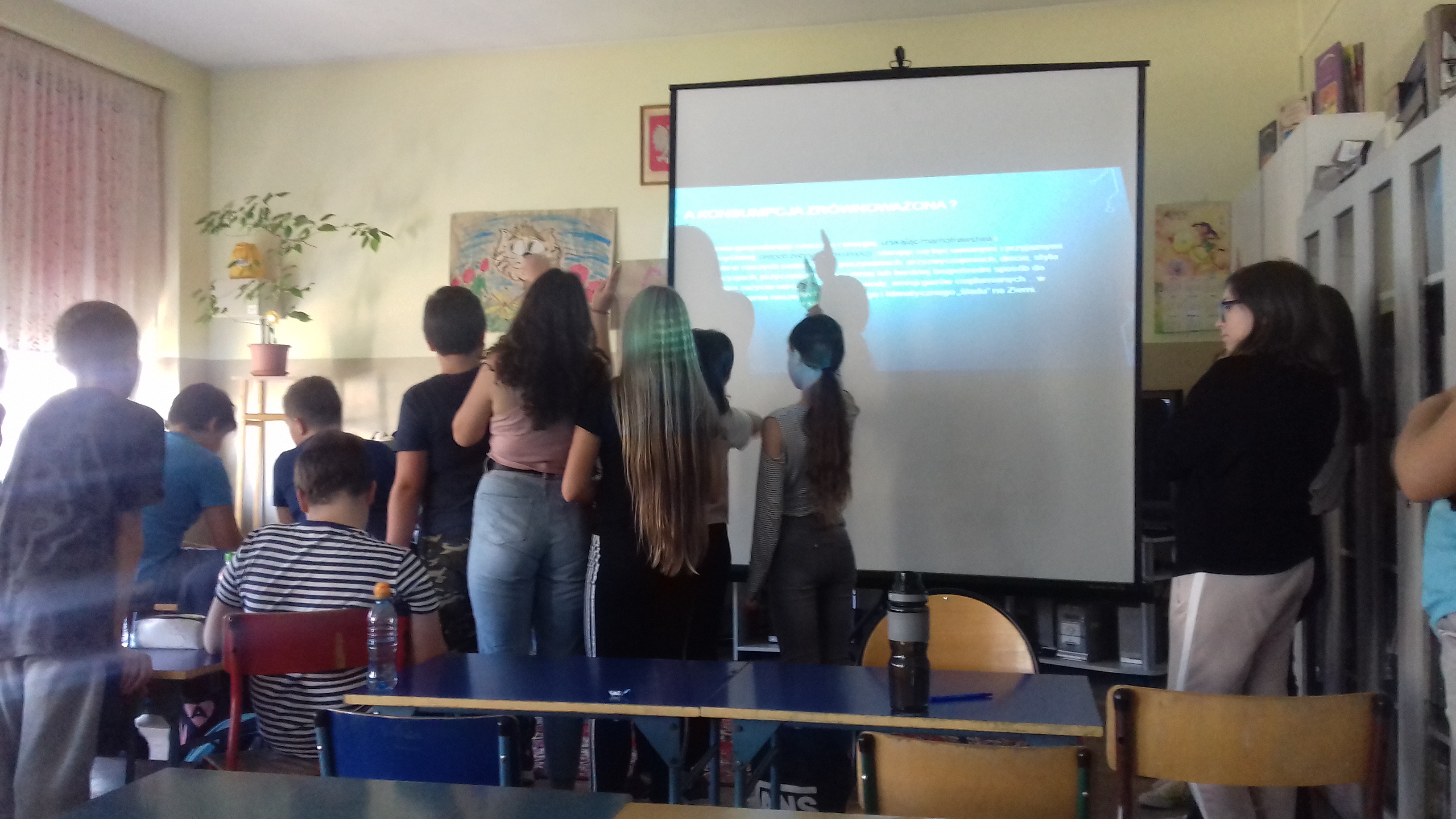 W dniu 22.10.2019r. w naszej szkole gościła Prezes Stowarzyszenia Ziemia i My – Centrum Edukacji Ekologicznej z Dąbrowy Górniczej, pani Grażyna Morcinek-Kalita. Przeprowadziła ona wśród uczniów klas VIb, VIc i VIIb warsztaty ekologiczne pt. "Zrównoważony konsumpcjonizm". Zajęcia miały formę warsztatową, propagowały postawę odpowiedzialnego konsumpcjonizmu. Uczniowie zostali zapoznani z fachową terminologią. Podniesiono ich świadomość na temat wpływu konsumpcji na środowisko i nadmierne zużycie zasobów. Pogłębiono wiedzę o oddziaływaniu konsumpcji na nasze zdrowie psychiczne i fizyczne. Uczniowie nabyli umiejętność racjonalnego gospodarowania zasobami, odpadami. Poznali zasadę 3R. Nauczyli się hierachizować swoje potrzeby, a przede wszystkim wartościować relacje człowiek-człowiek, człowiek-środowisko.