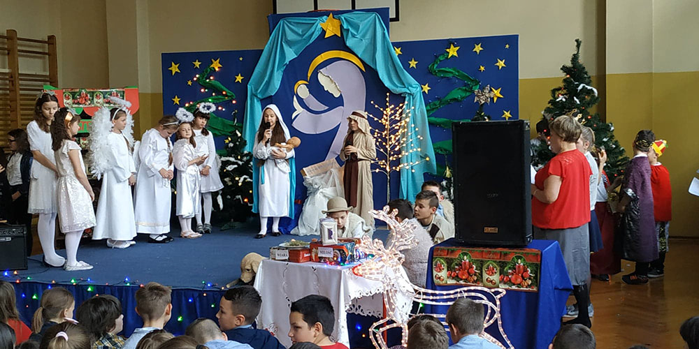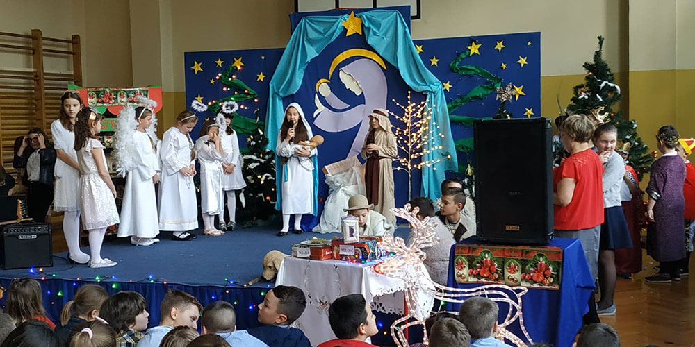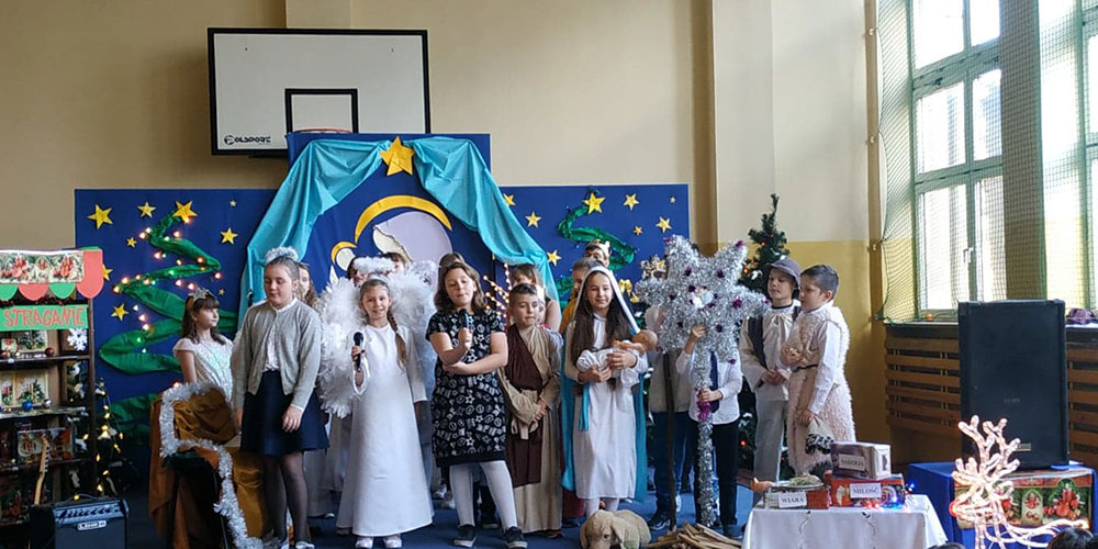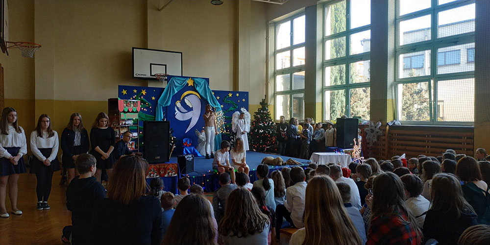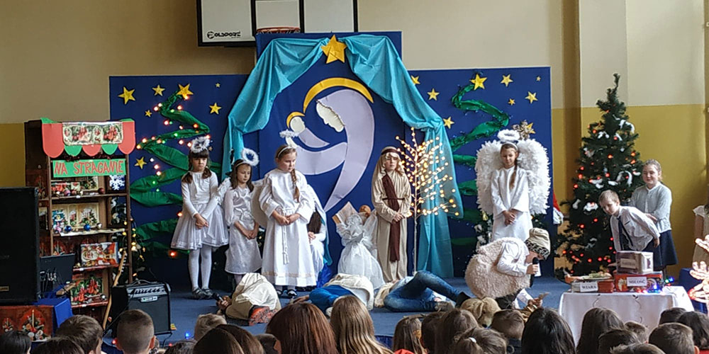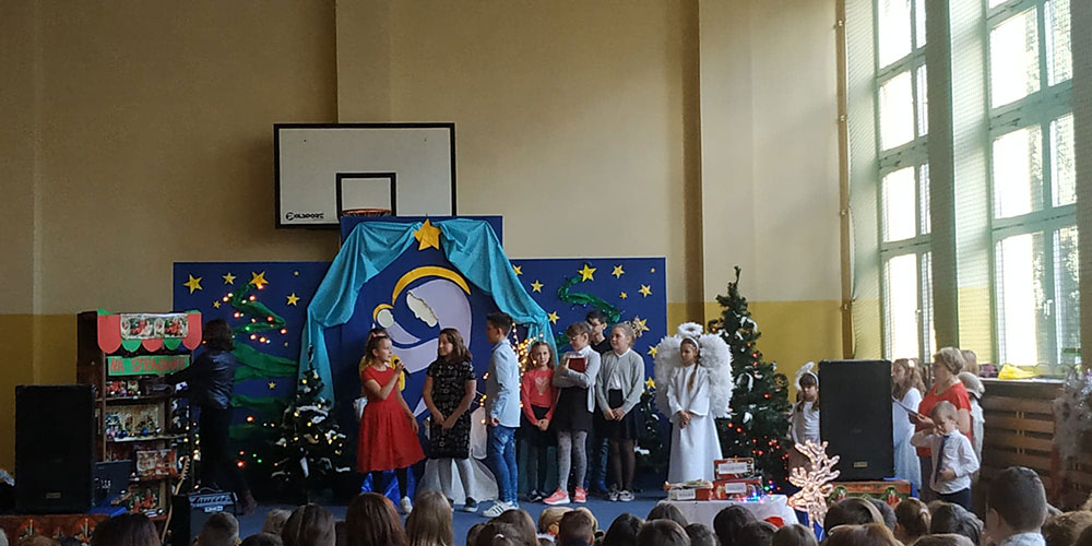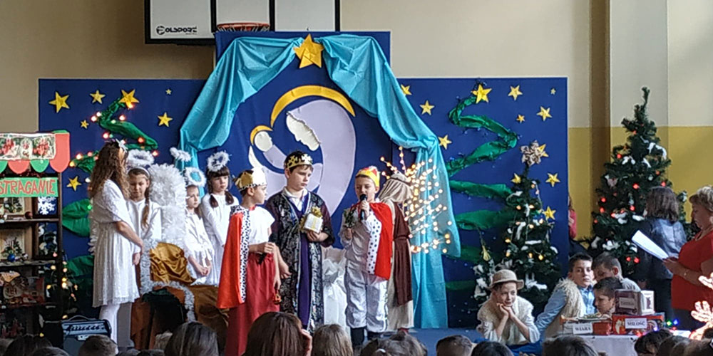 W pięknej scenografii i w specjalnie przygotowanych kostiumach uczniowie naszej szkoły wprowadzili zgromadzoną publiczność w świąteczny nastrój.