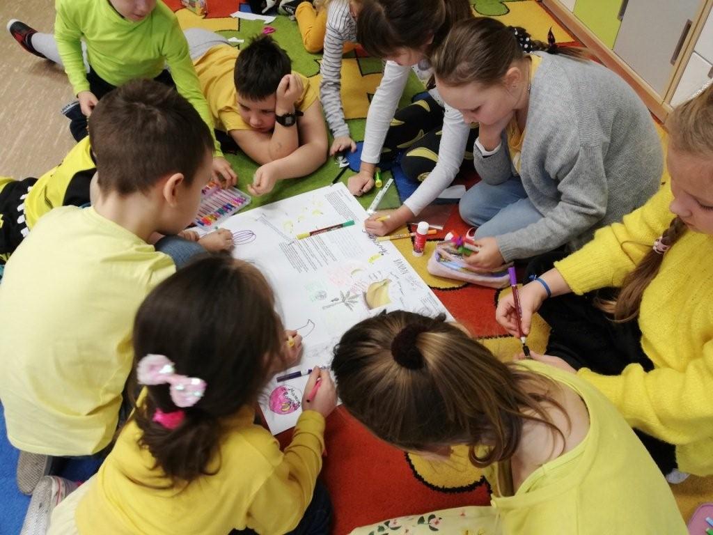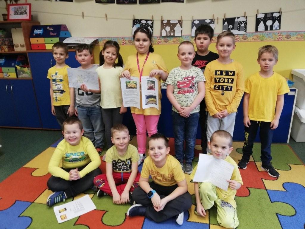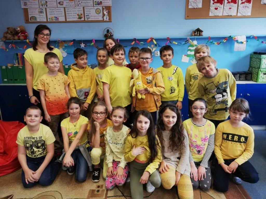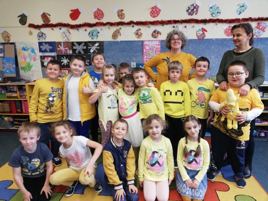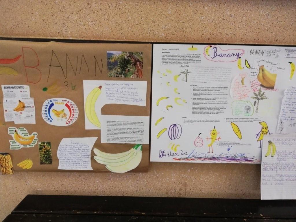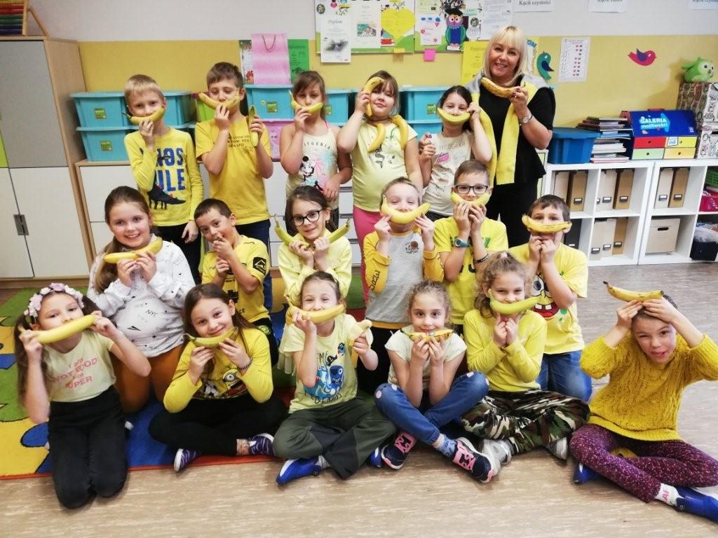 Przed samymi feriami, a więc 10 stycznia klasy młodsze obchodziły Dzień Banana. Zadaniem uczniów było ubranie się na żółto oraz przygotowanie ciekawych informacji dotyczących banana min. pochodzenie, wartości odżywcze, odmiany. Każda klasa w swoim gronie dzieliła się zdobytymi ciekawostkami oraz tworzyła plakat promujący ten wartościowy owoc. Powstałe prace zawisły obok stołówki, aby cała społeczność szkolna mogła wzbogacić wiedzę na temat banana, a przez to zachęcić się do częstszego jego spożywania. Chętni uczniowie wzięli udział w konkursie kulinarnym „Przepis na danie z bananem”.