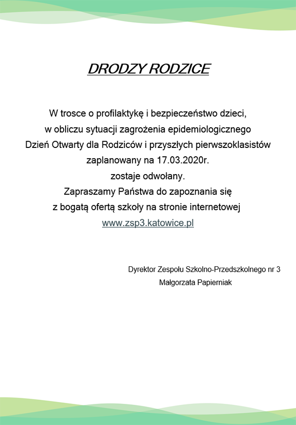 Dzień Otwarty w ZSP3 odwołany