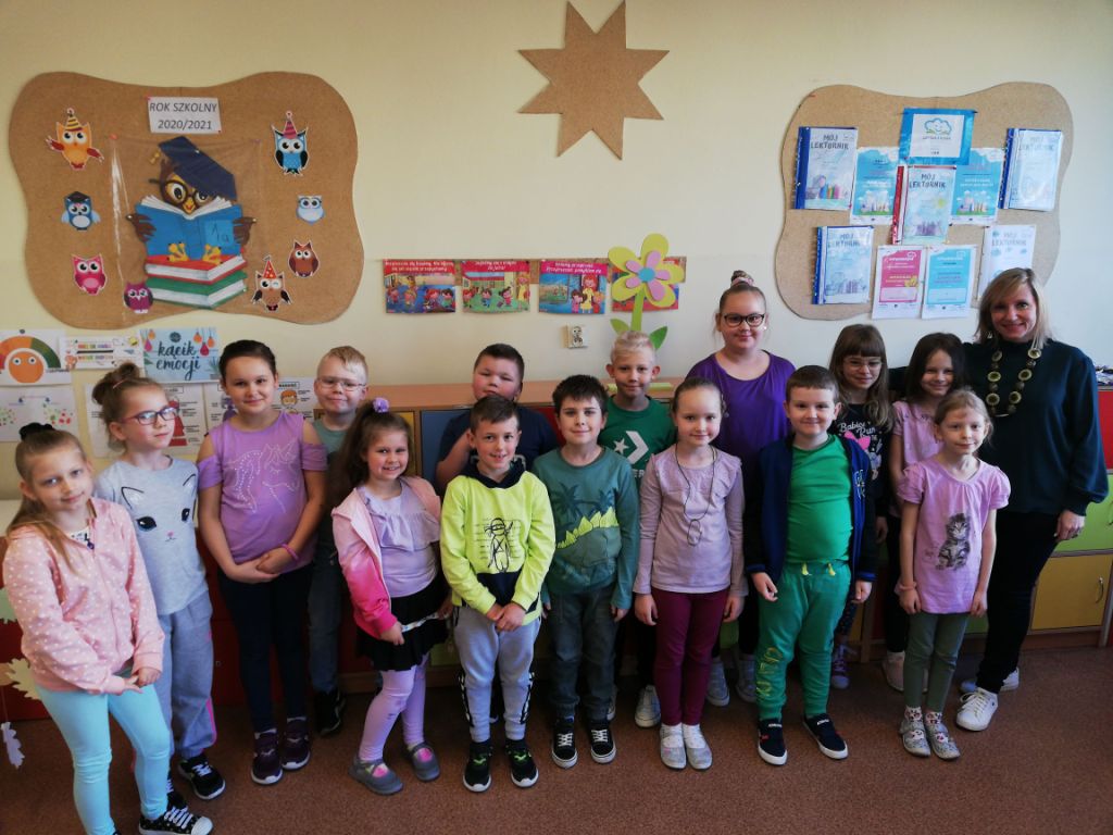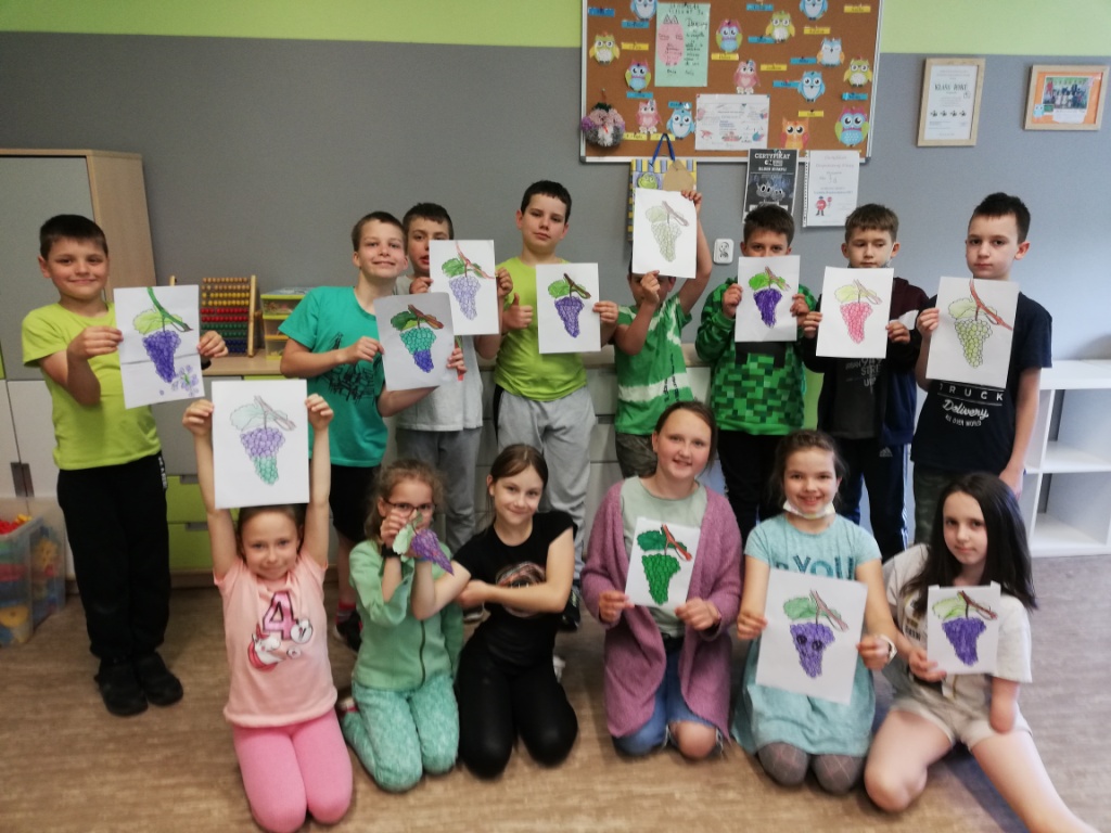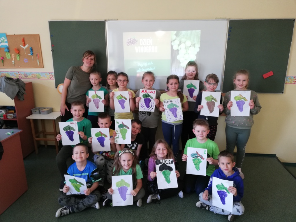 21 maja uczniowie z klas młodszych obchodzili Dzień Winogron. W tym dniu królował kolor zielony i fioletowy! Dzieci zostały zaznajomione z najważniejszymi wartościami odżywczymi winogron za pomocą przygotowanej prezentacji multimedialnej oraz krótkiego filmu edukacyjnego. Następnie kolorowały ilustracje przedstawiające wspomniany owoc.