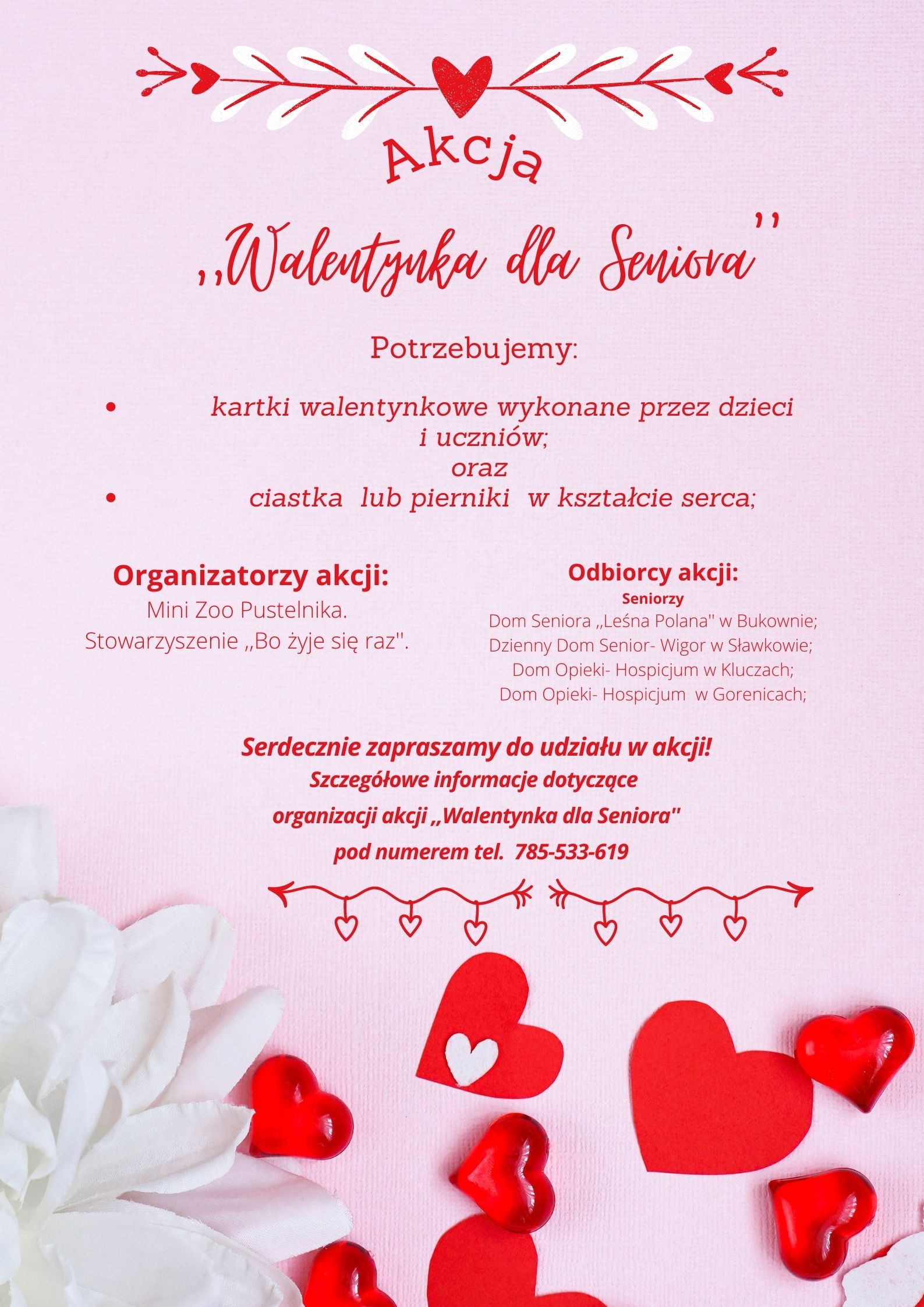 Klasa II a zaprasza do udziału w akcji charytatywnej WALENTYNKA DLA SENIORA